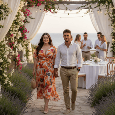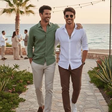 Para ellos: Nada de trajes completos ni corbatas. Con una camisa de lino o algodón y unos pantalones tipo chino vais perfectos.